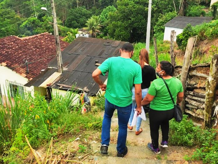 | Equipe da Assistência Social durante visita às áreas afetadas pelas chuvas |